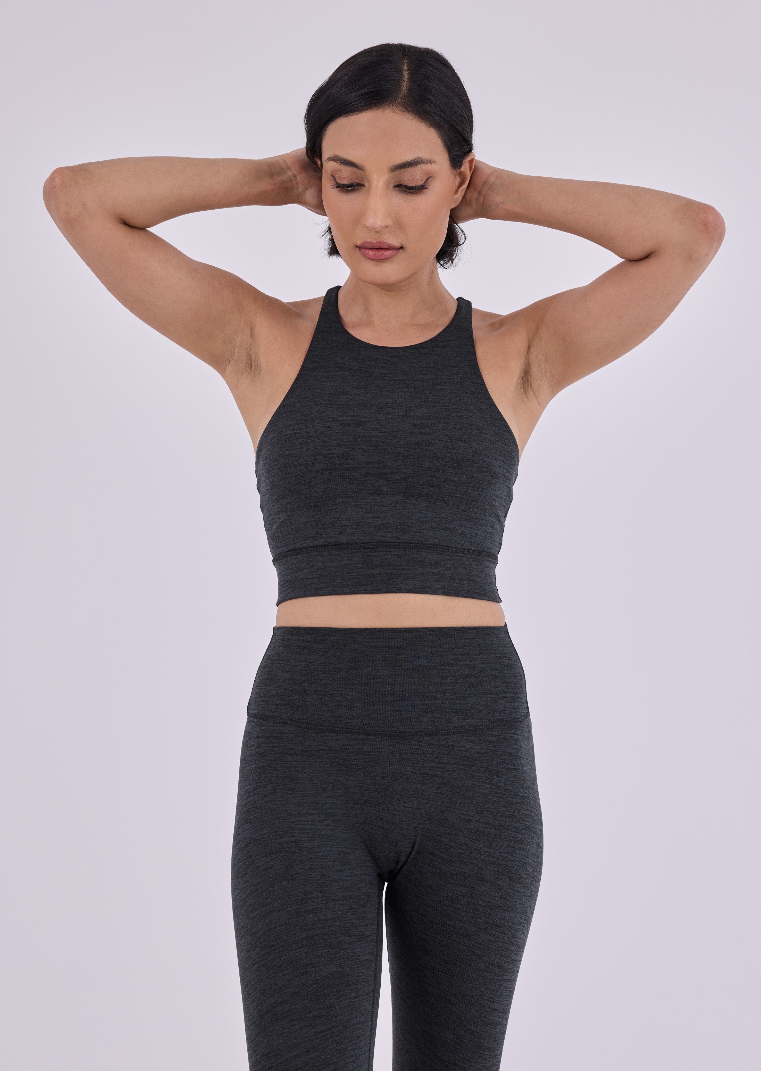 Introducing the Active Marl Cross Back Bra - crafted from luxuriously soft fabric for unparalleled comfort during low-impact activities like yoga and Pilates. Its distinctive cross-back design not only provides gentle support but also enhances the silhouette with a sleek, modern elegance. Combining effortless style, functionality, and refined comfort, this bra is a versatile essential for every mindful movement.